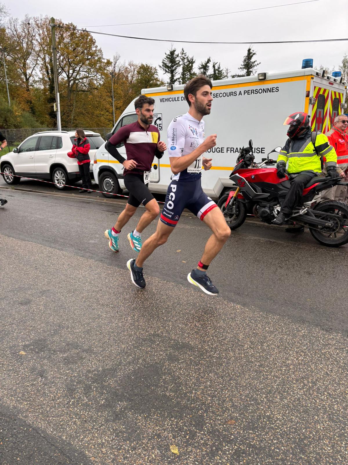 J’ai été très satisfait de mes sensations en course à pied : je réalise le 4ème meilleur temps sur le premier tronçon (6 km en 20:58) et le 7ème sur le second (3 km en 11:39). En revanche, j’ai manqué un peu de caisse sur le vélo, avec un temps de 40:43 sur les 24 km, ce qui m’a coûté quelques places car je n’ai pas réussi à accrocher les bons groupes.