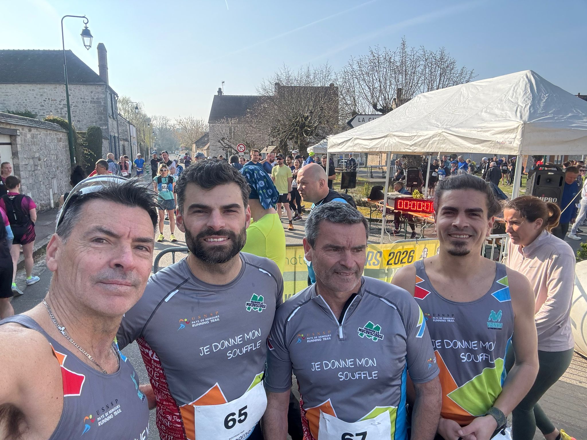 La Team Fillastre avait coché de longue date la Course Verte des 3 Pignons à son calendrier. Si le départ et l’arrivée se tenaient au cœur du village du Vaudoué, le groupe était privé de Robin, engagé sur le Marathon de Milan et resté sourd à nos multiples défis